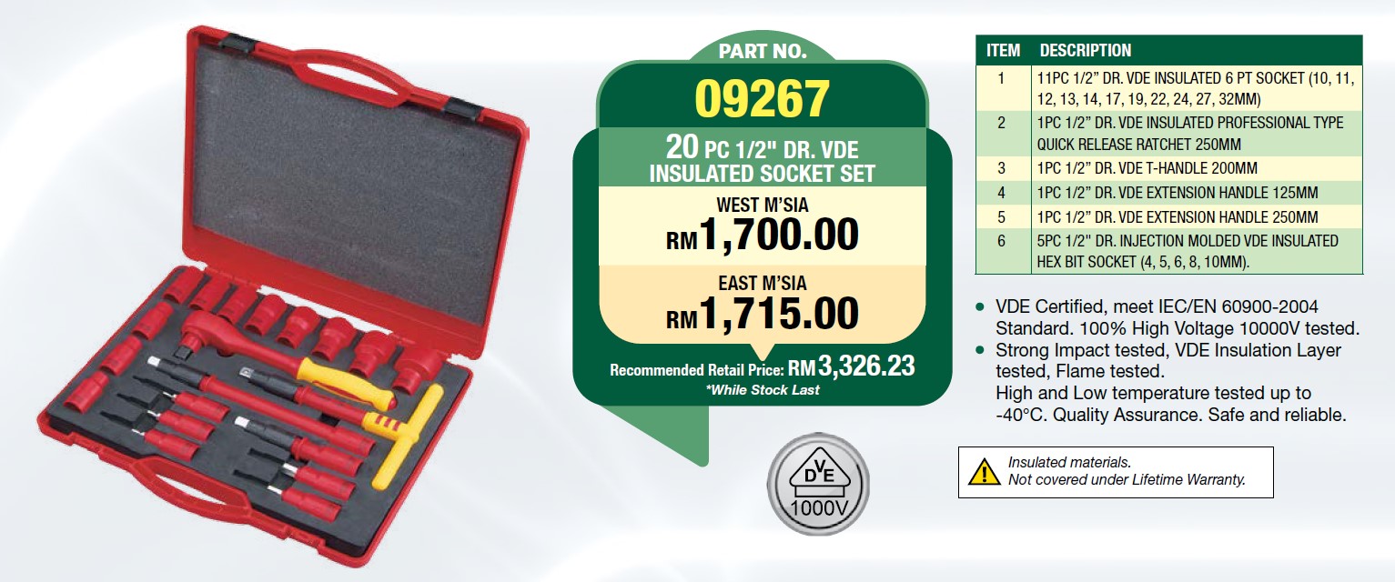 Sata 09267 VDE INSULATED SOCKET SET 20pcs, 1/2″DR.