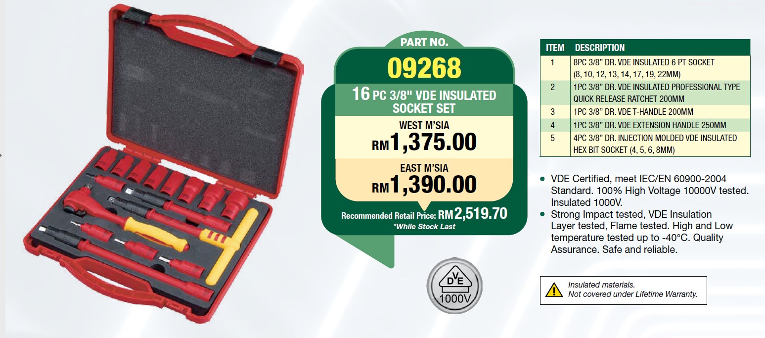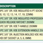 – 8 x 3/8” DR.VDE Insulated 6PT Socket (8,10,12,13,14,17,19,22MM)